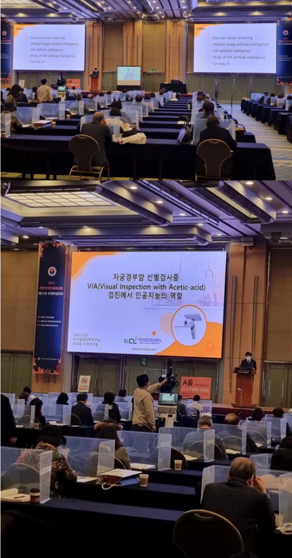 2021 대한산부인과의사회 제12차 추계학술대회 출전 (2021.12.05) 최고관리자 2025-11-06 최고관리자 0 33 11.06 09:47 아이도트는 2021년 12월 5일 "2021 대한산부인과의사회 제12차 추계학술대회"에 출전하였습니다학술대회에서 최성원 부사장은 "자궁경부암 선별검사중 VIA(Visual Inspection with Acetic-acid) 검진에서 인공지능의 역할"을 주제로 발표하였습니다.(의)한국필의료재단(KCL) 한국임상의학연구소의 부스에서 Cerviray AI를 홍보하였습니다